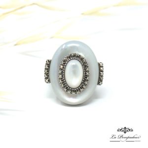 Très chic dans un style art déco, vintage. On aime l’émail noir qui vient soutenir le rouge profond du grenat