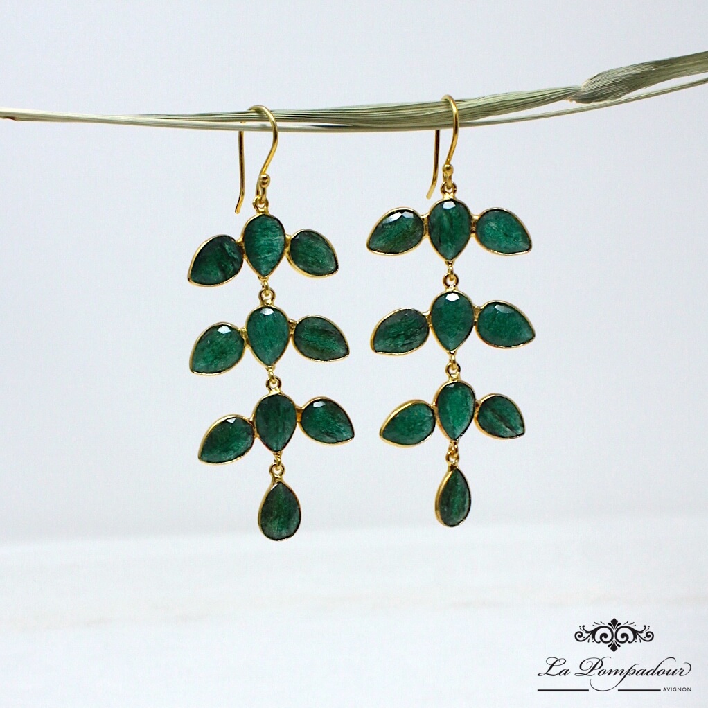 Superbes boucles d’oreilles composées d’onyx vert. Lumineuses, légères et très mobiles ces boucles sont agréables à porter et d’un effet renversant.