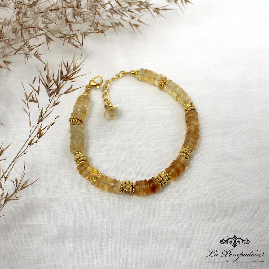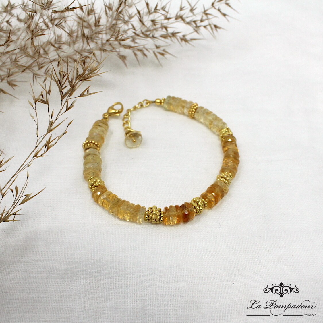 Bracelet composé de citrines taillées à facettes ainsi que d'éléments plaqués or.