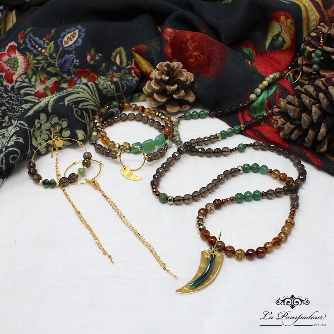 | Pierre | Agate Feu, Bronzite, Jade, Quartz Fumé |