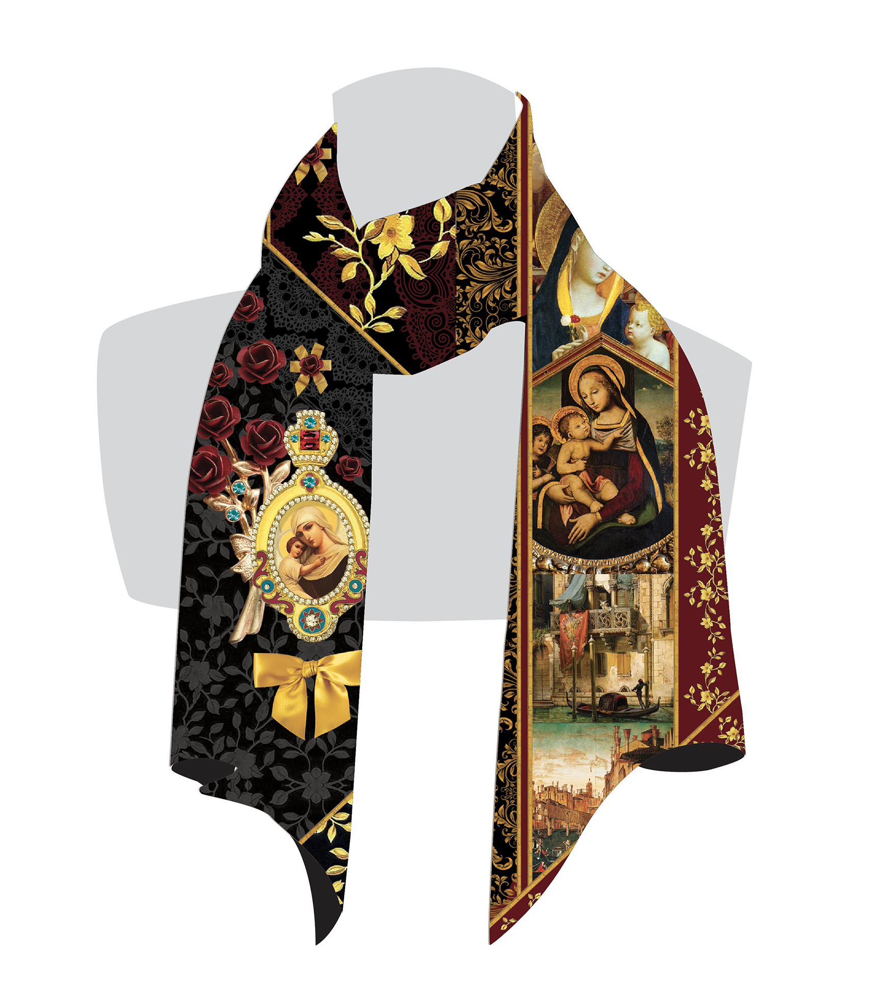 Les Carolinas sont des écharpes composées d'une face noire 95% cachemire et 5% soie et d'une face imprimée 100% modal.