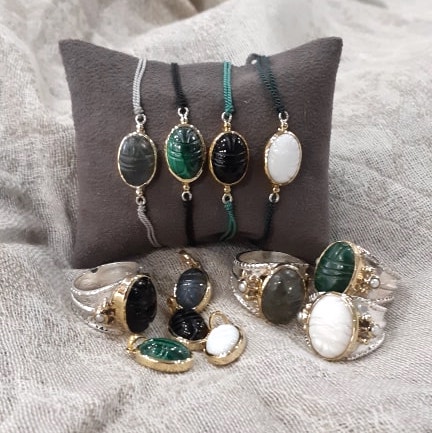 | Pierre | Labradorite, Malachite, Nacre, Œil du Tigre, Onyx |