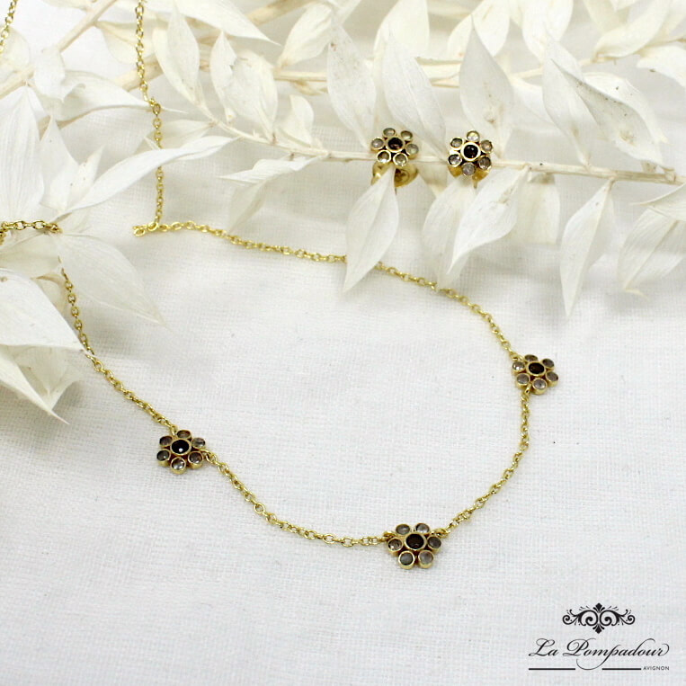 Collier Fleurs Labradorite Quartz Fumé – MJ