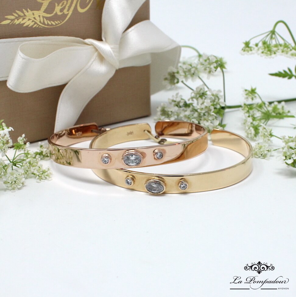 Elégant et intemporel jonc orné d’un beau zirconium ovale serti au centre et de deux petits de chaque côté.