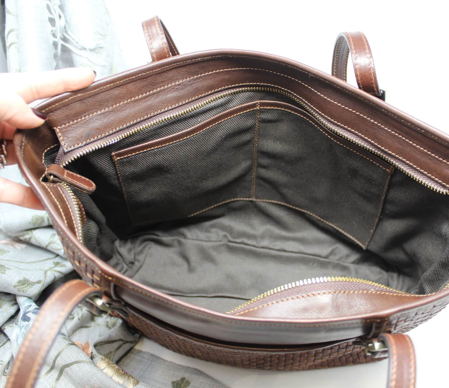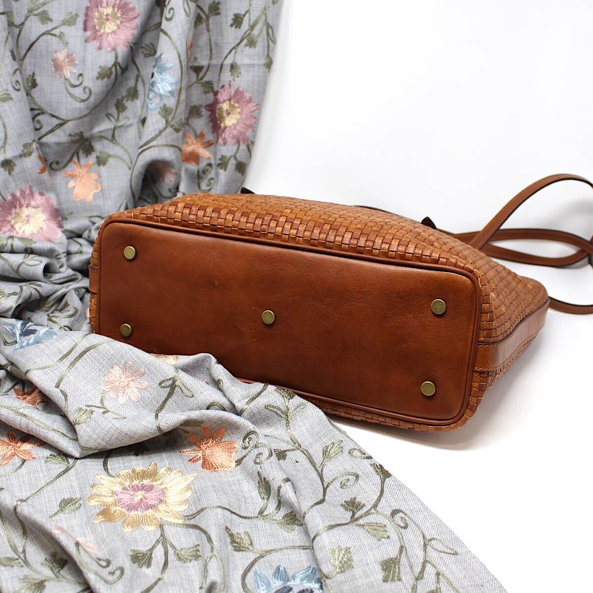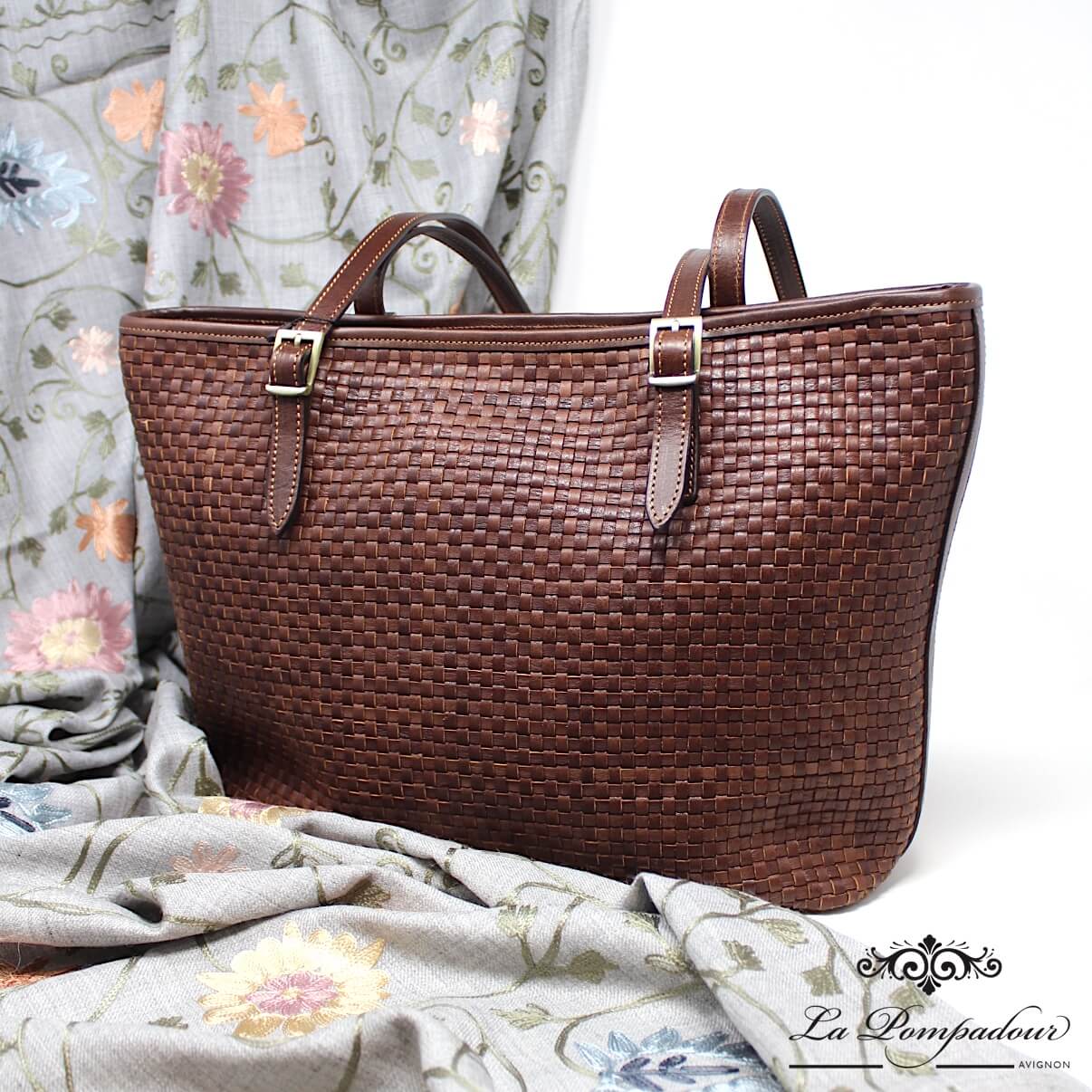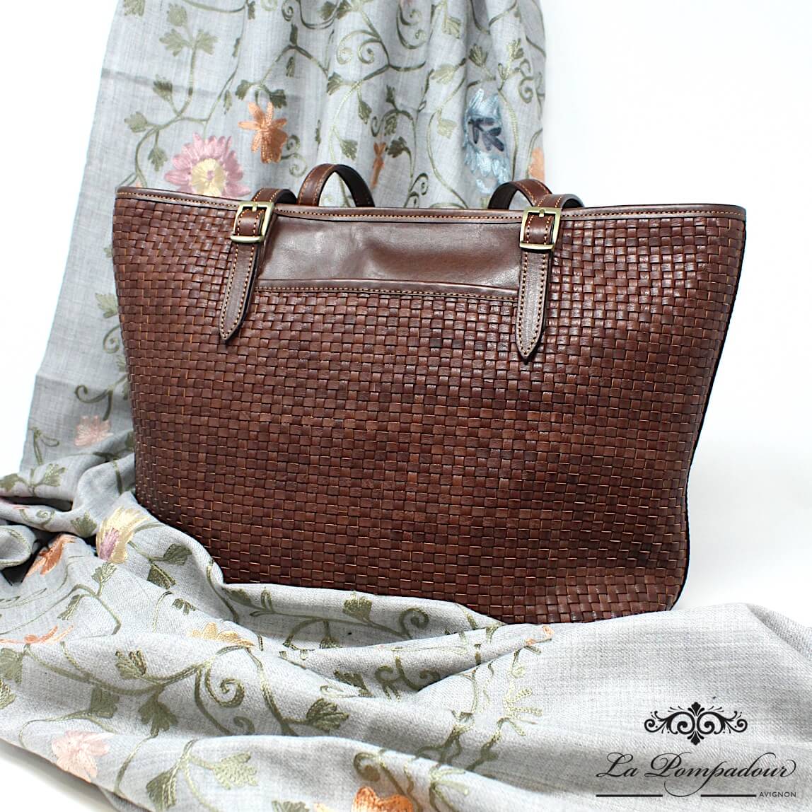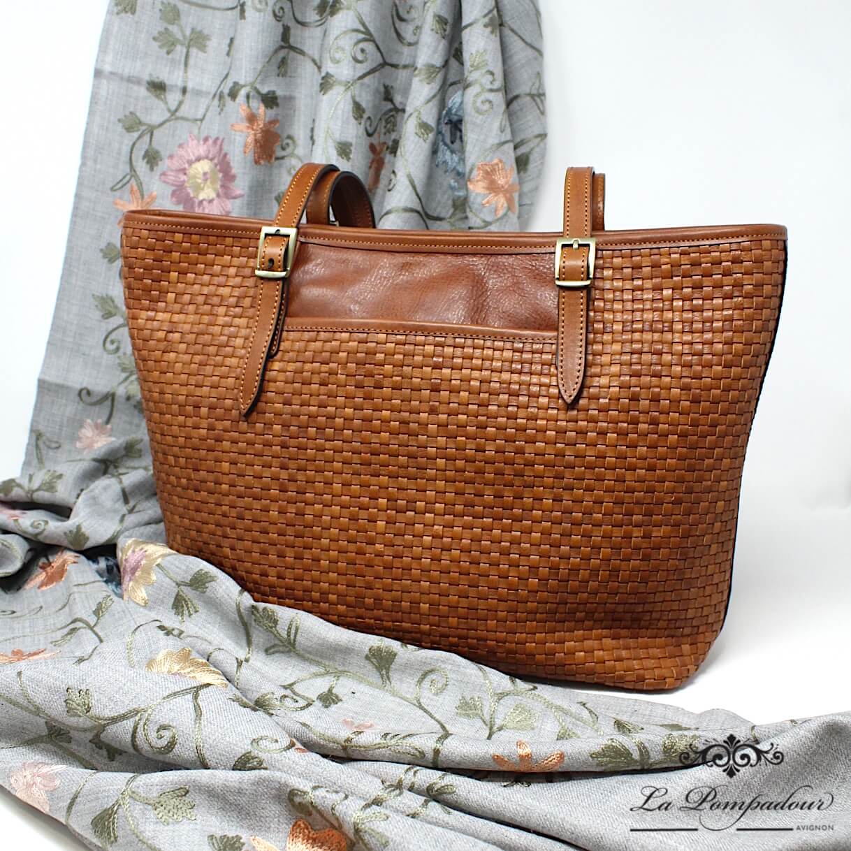 Sac à main épaule en cuir italien, tannage végétal. Cuir tressé devant et derrière