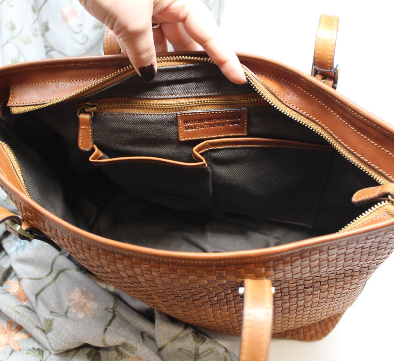 Intérieur doublure tissus, grande poche zippée et quatre poches ouvertes