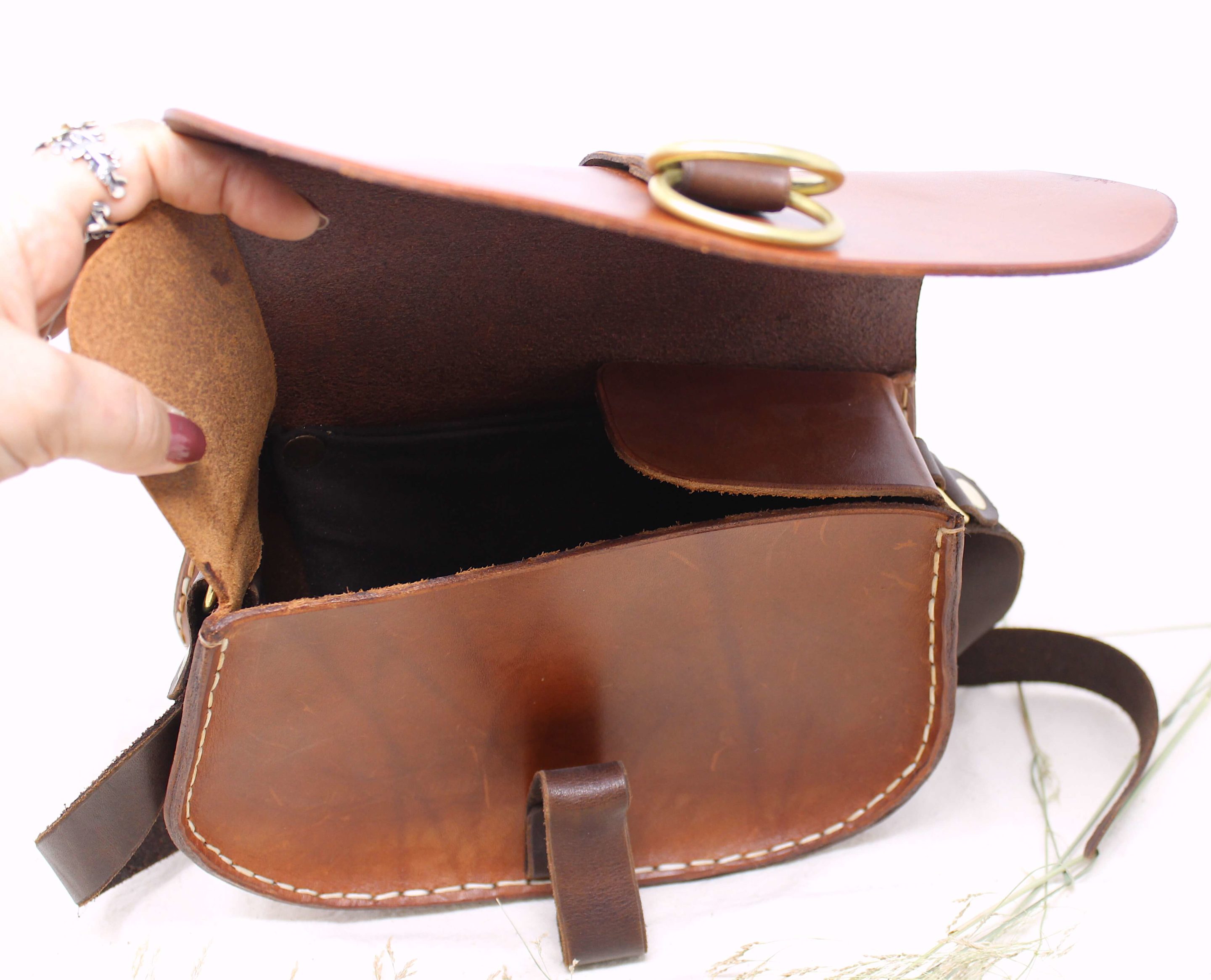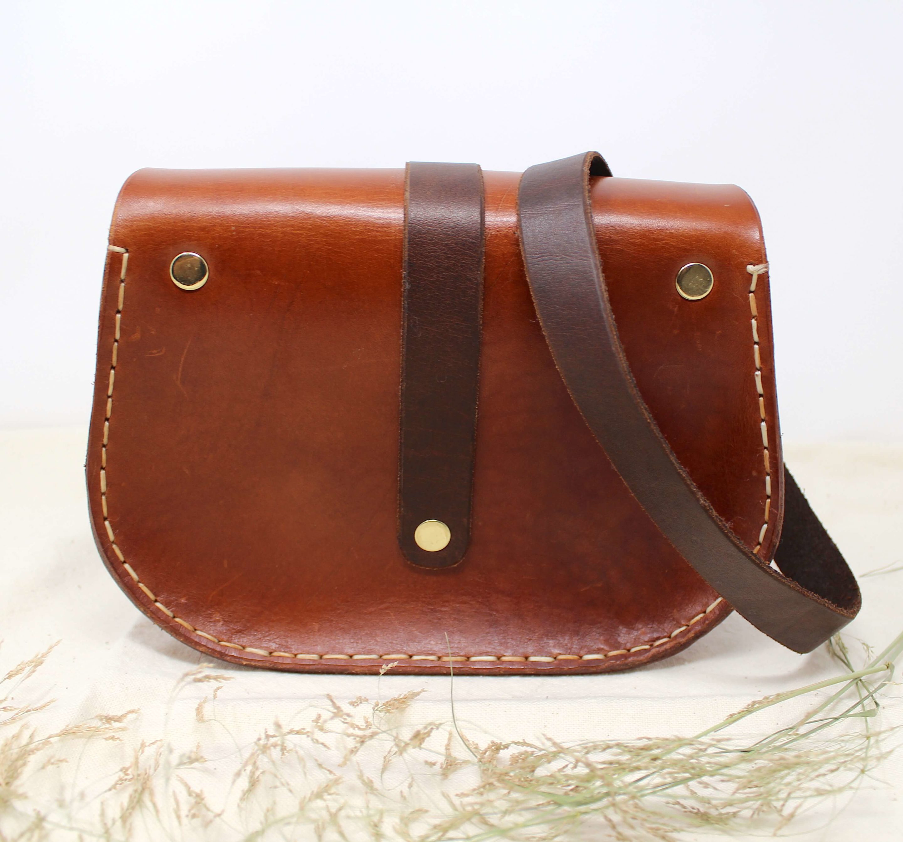 Cuir rigide tanné végétal , couture mains.