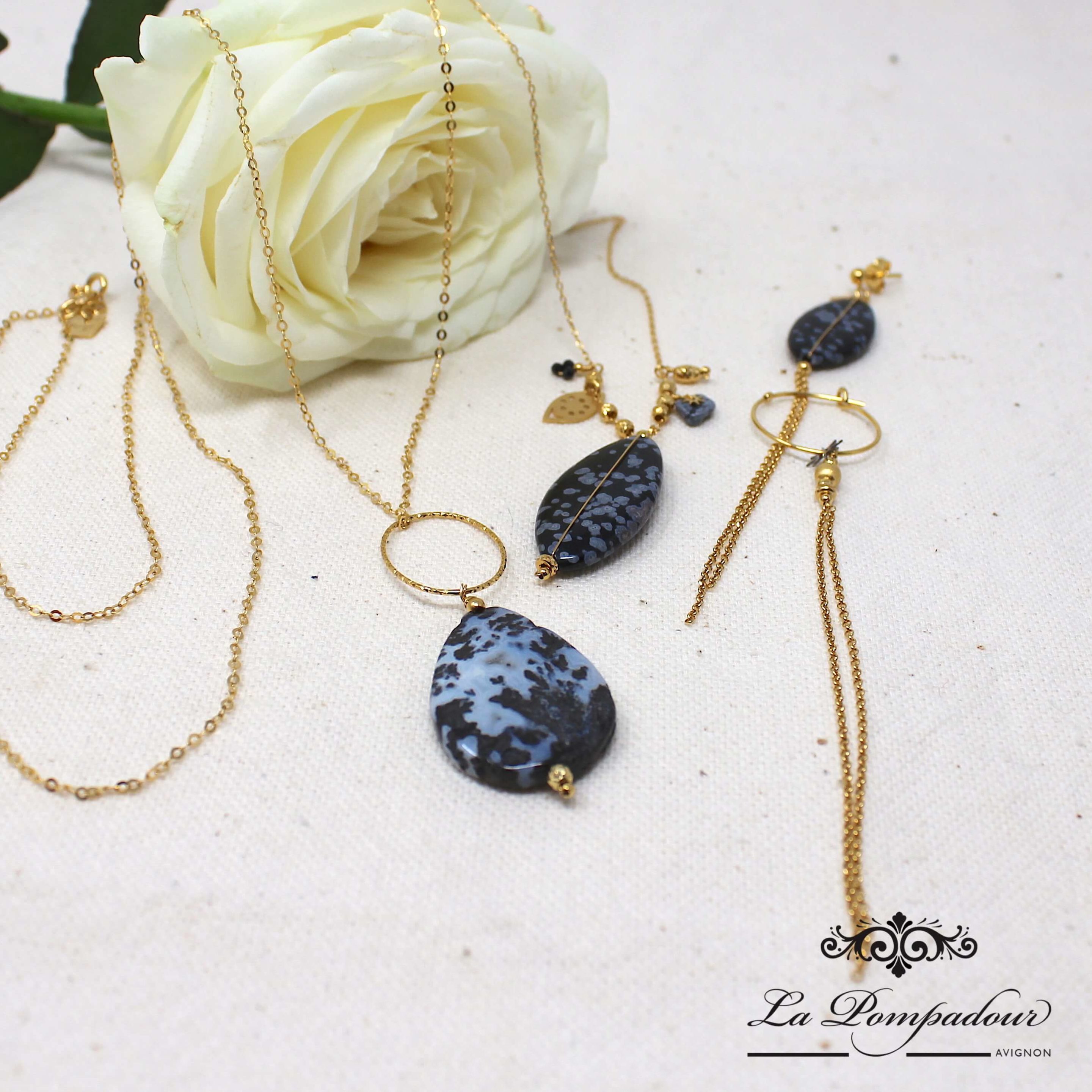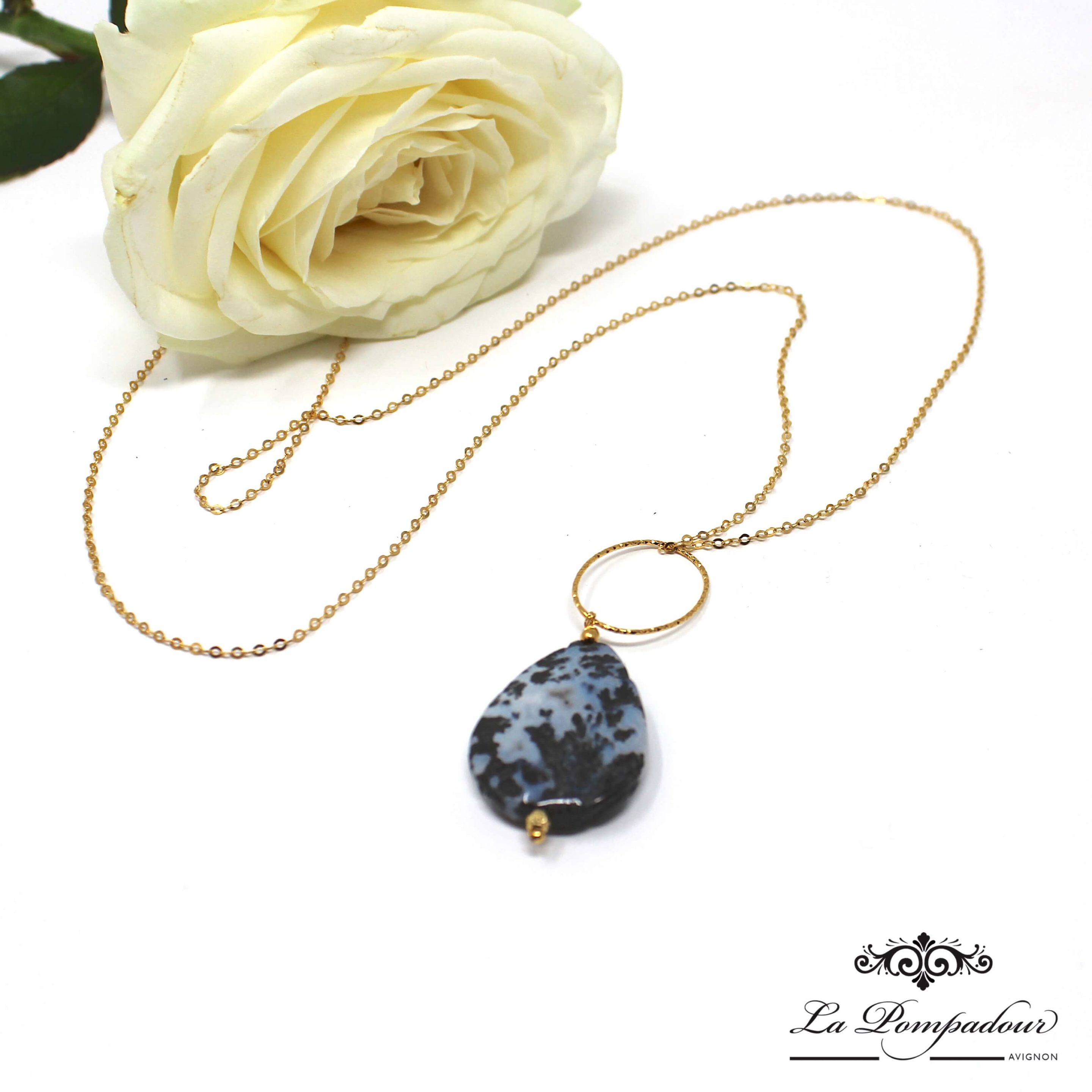 Longueur pendentif (pierre et ovale martelé) : 6 cm
